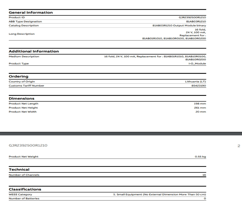 وحدة الإخراج الثنائية ABB 81AB03-1210