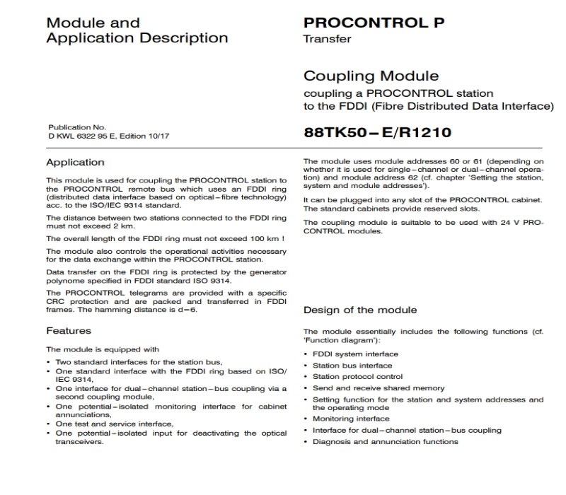 ABB 88TK50-E/R1210 FDDI وحدة اقتران