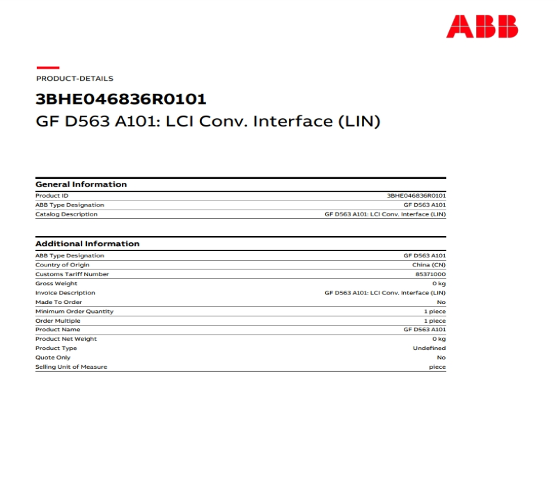 إن ABB GFD563A101 (3BHE046836R0101) عبارة عن وحدة منفذ Ethernet مصممة للأتمتة الصناعية. فيما يلي مواصفاته الفنية الرئيسية: