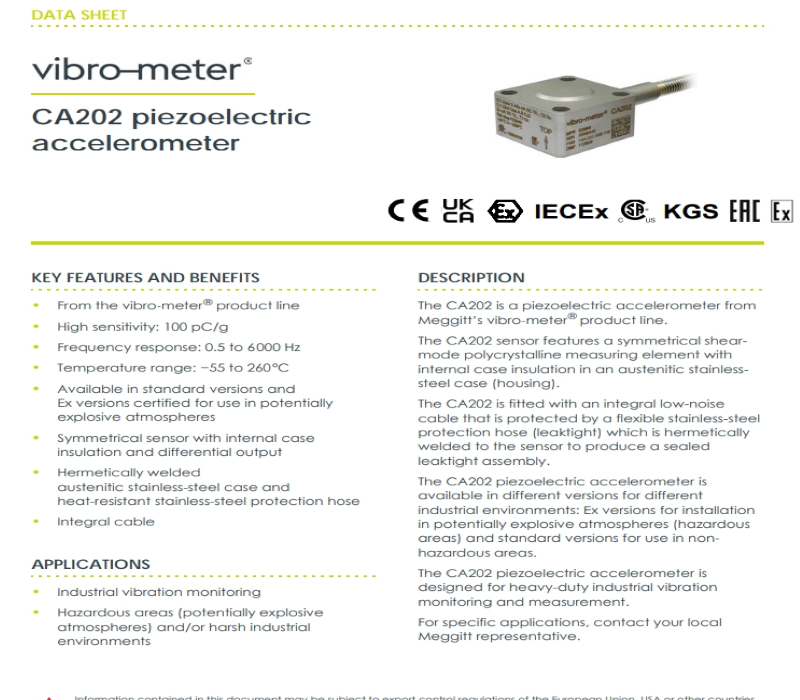 CA202 144-202-000-203 مقياس تسارع كهرضغطي