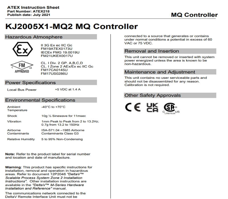 وحدة تحكم Emerson KJ2005X1-MQ2 13P0072X082 VE3008 MQ