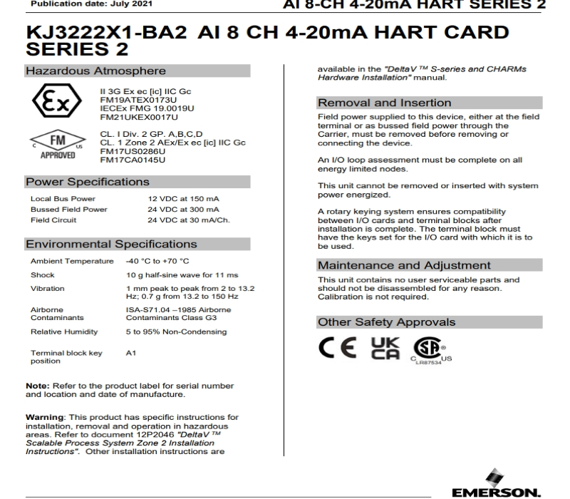 وحدة الإدخال التناظرية Emerson KJ3222X1-BA2